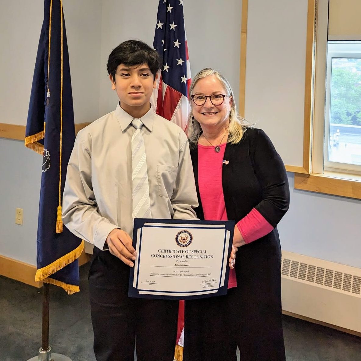 On Saturday, May 18th, a certificate of congressional recognition was awarded to Aryash by congresswoman Susan Wild during an event for new outstanding Military Academy Candidates; Aryash was invited to give the pledge of allegiance during the ceremony.